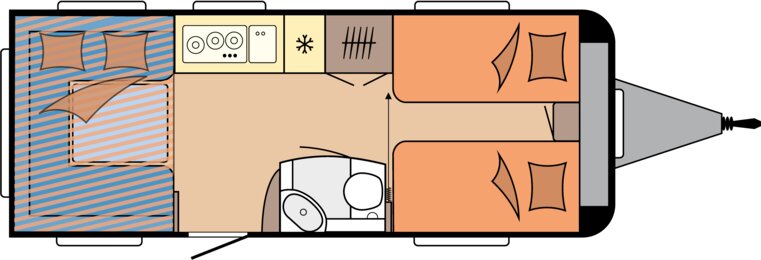 Unieke UHL Indeling: Compacte afmeting, maximale slaapcapaciteit.