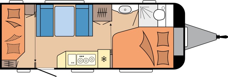 Bovendien is deze caravan uitgerust met een Grote Koelkast, zodat u tijdens lange vakanties altijd voldoende proviand bij de hand heeft.