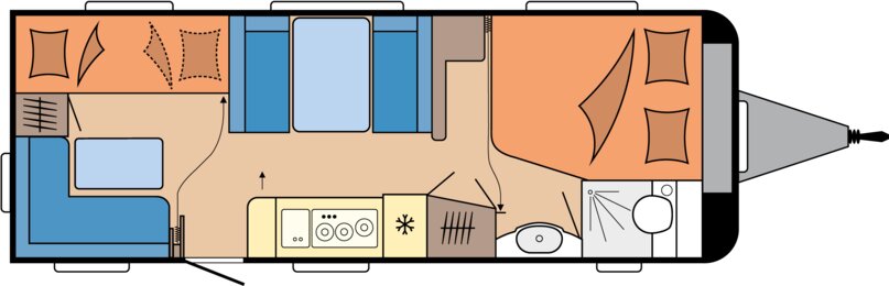 De 650 KMFe is de ideale caravan voor het grote gezin dat droomt van luxe, ruimte en stabiliteit. Zet de deuren open en geniet van een zorgeloze zomervakantie!
