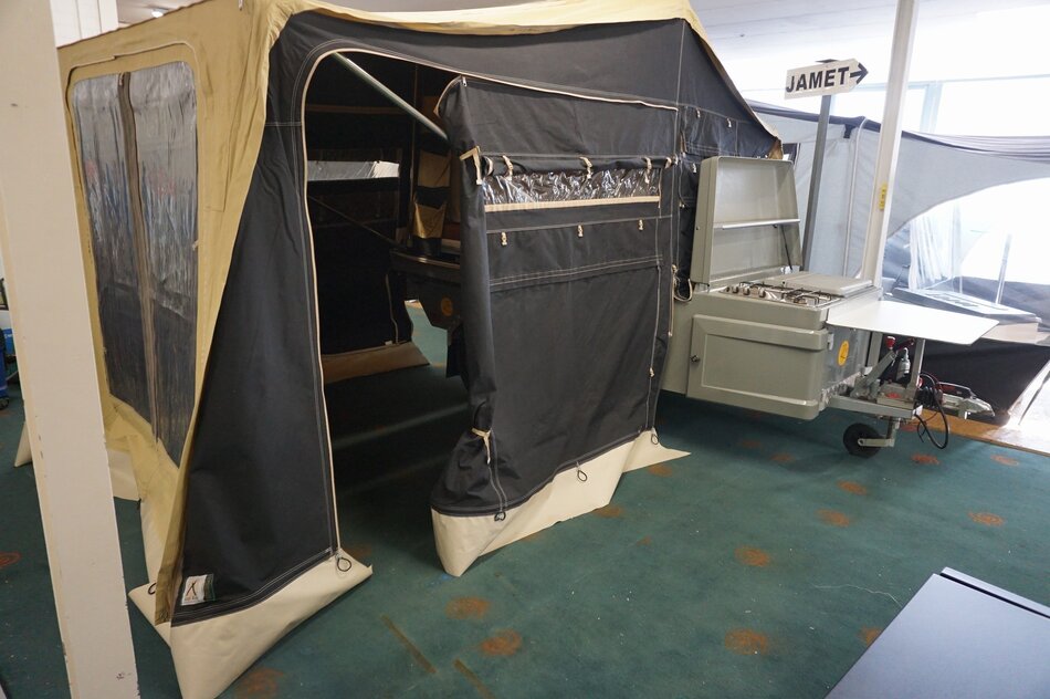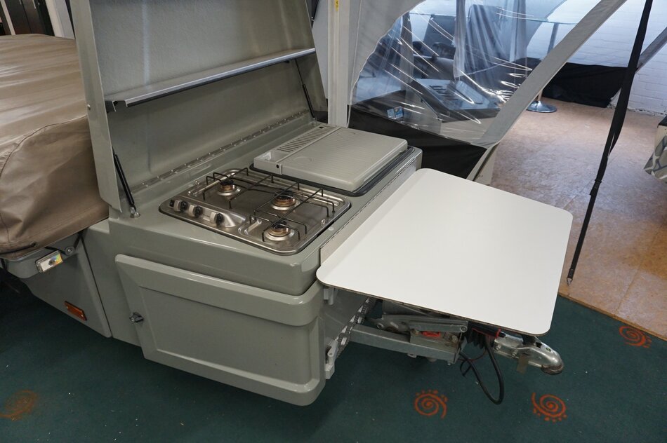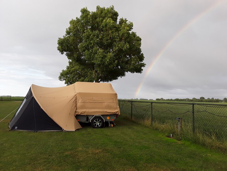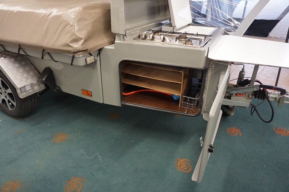 Zambezi River lodge Crossroad in zeer goede staat. Stoere kunststof wagen met enorm veel bergruimte, eenvoudig op te zetten. Luxe keuken op de dissel met 3 pits gas en koelkist. inritsbaar kuipzeil. Grote boogluifel met windhoeken en voorwand. Prachtig panorama dak met hor.