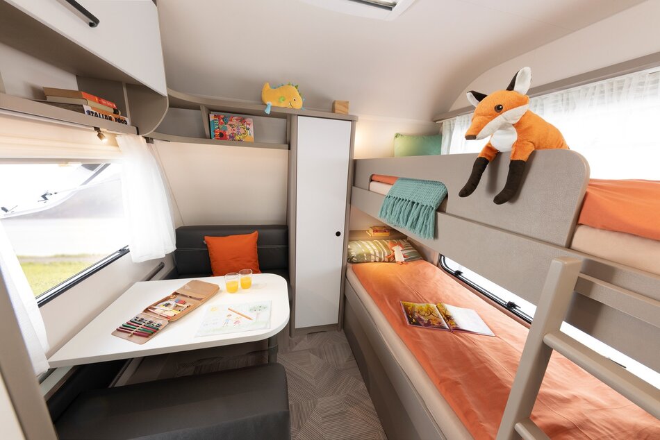Dethleffs C'Go Active Up 525 KR 2026 Hefbed, stapelbed. Zeer ruime gezinsvaravan met grote rondzit en comfortabel hefbed. Ruime keuken met hoge koelkast. Stapel bed en zijzit voor de kinderen. Groot serviceluik. Zeer compleet met het Active Pakket.