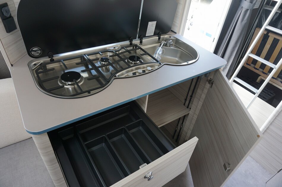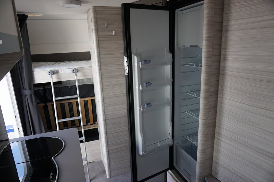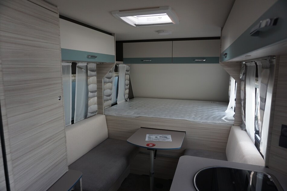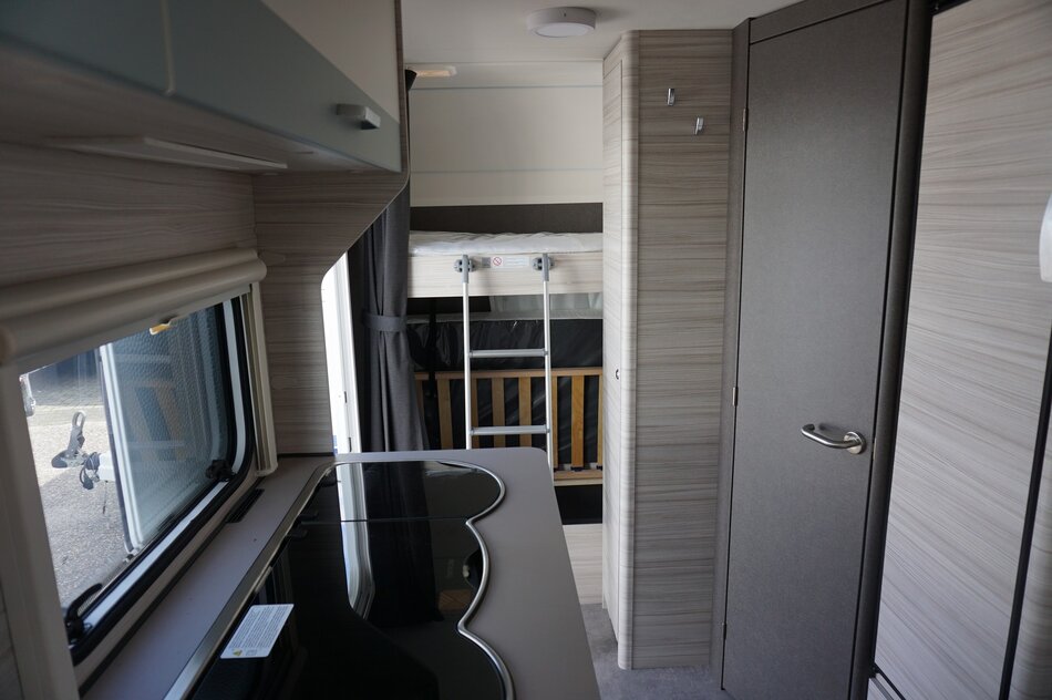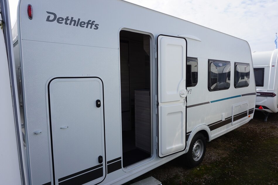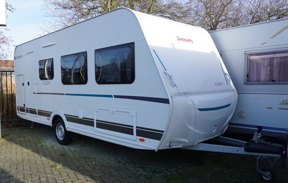 Nieuwe Dethleffs C'Joy 480 QLK stapelbed 2025. Lichtgewicht gezins caravan met verbazend veel ruimte. Comfortabele bedden. Ruime middenzit. Opties.1360 KG as, Dynamik pakket, Hordeur en leeslampjes. Prijs incl Opties: € 24.020.- Nu rijklaar € 21.950.-.