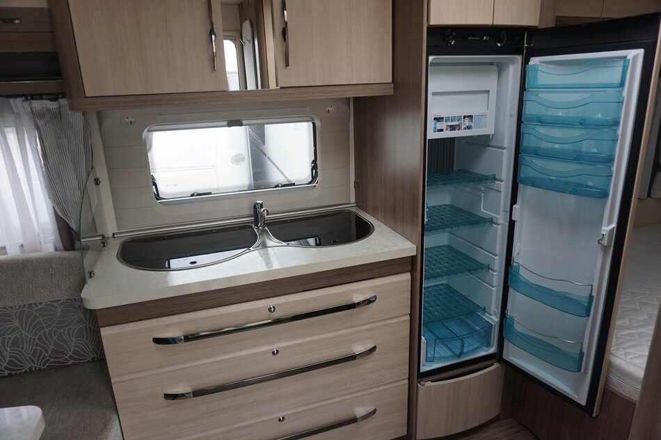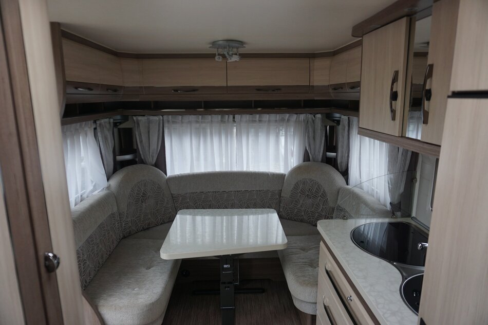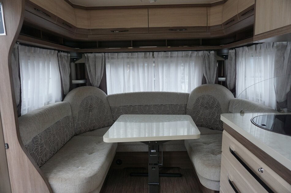 Uitstekend onderhouden Hobby de Luxe 460 UFe. Ruime rondzit. Luxe keuken met hoge koelkastnc en brede lades. Thule dakluifel, Caravan mover, Dorema President voortent 280 diep.
