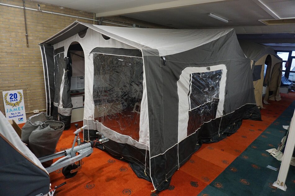 Prachtige Jamet Jametic All-season uit 2019 met het gemakkelijke 1-2-3 opzetsysteem en Easy acces. Voorzien van Luifel met zijwanden, Ondertent, Reservewiel, Schokdempers en Thule feitsendrager.